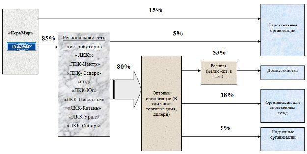 Сбытом данной продукции на территории России, Беларуси, Украины и Молдовы занимаются логистические компании «КераМир» через региональных дистрибуторов (региональная сеть «ЛКК»), а также сеть фирменных розничных магазинов «КераМир», которые работают по направлению «туалет и ванная комната». Региональные дистрибуторы выстраивают отношения с оптовыми и розничными операторами, нацеливаясь на многолетнее качественное сотрудничество и обеспечивая поддержку в области логистики, сервиса и маркетинга.