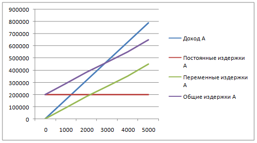 Рис. 5.1 – График безубыточности продаж для услуги А