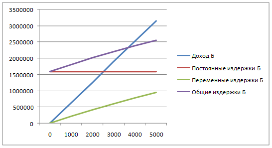 Рис. 5.2 – График безубыточности продаж для услуги Б