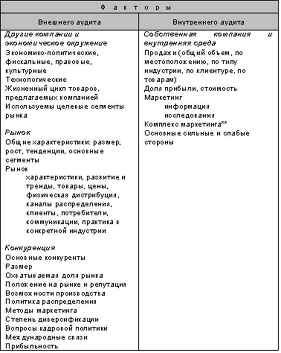 Факторы внешнего и внутреннего маркетингового аудита