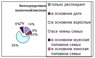 Непосредственными потребителями молочной/кисломолочной продукции, являются в основном все члены семей (65%), в некоторых из которых ее в большей степени употребляют дети (9%), мужская половина семьи (6%) и женская половина семьи (3%):