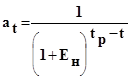 Величину коэффициента приведения разновременных результатов и затрат аt определим так: