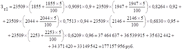 Если принять, по результатам анализа за прошлые года, что программа будет расти примерно на 5 % в год, а принятый расчетный период равен 5 годам, можно определить экономический эффект от внедрения мероприятий по совершенствованию: