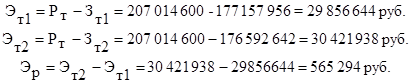 Где Эт - реальный экономический эффект от внедрения проектных мероприятий за расчетный период, руб.; Эт1 - экономический эффект, полученный за расчетный период без внедрения проектных мероприятий, руб.; Эт2 - экономический эффект, полученный за расчетный период после внедрения проектных мероприятий, руб.[2]