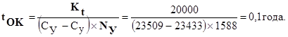 Далее определяем срок окупаемости tок дополнительных капитальных вложений затраченных на осуществление мероприятий.