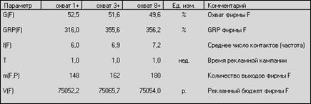 Из сказанного ясно, что чем больше TRP и OTS, тем большая аудитория имеет шансы увидеть (услышать) рекламу хотя бы один раз в течение кампании, и тем большее число людей из этой аудитории увидит ее более одного раза. Таким образом, показатель 5 - один из основных параметров для сопоставления разных вариантов медиапланов [17].