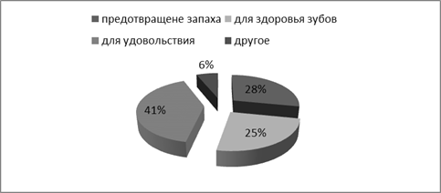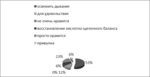 Исходя из данных, которые мы получили на рисунке 8 можно сказать что основной целью употребления респондентом жевательной резинки является получение удовольствия(41%).