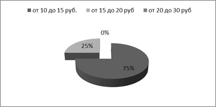 Таким образом, наиболее приемлемая цена с учетом ошибки выборки находиться в интервале от 12.79 до 14.71 рублей, при этом средняя цена, которую готовы отдать покупатели за товар установилась на уровне 15 рубль.
