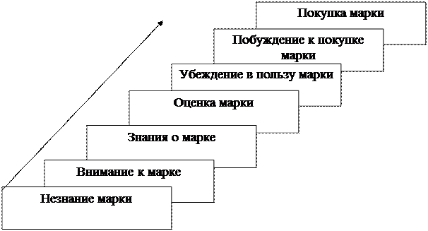Считается, что для понимания того, какой должная быть мотивация покупателя в торговом зале магазина необходимо представлять на какой ступени лестницы DAGMAR (рис. 1) он находится. От момента получения потребителем знания о товаре до момента совершения покупки может пройти значительный период времени.