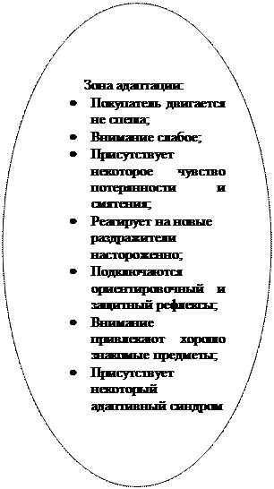 Для посетителя магазин представляет собой совокупность внешних факторов, активизирующих его безусловные и доминирующие условные рефлексы. Придя в магазин в первый раз, посетитель воспринимает торговый зал как некий лабиринт, хаос ощущений, который со временем, по мере адаптации, принимает четкие, организованные формы. Между средой магазина и поведением посетителя постепенно устанавливается гармония, в результате чего посетитель становится потенциальным покупателем. Задача специалиста по мерчендайзингу заключается в том, чтобы посредством регулирования качественных и количественных составляющих раздражителей ориентировать покупателя в нужном направлении.