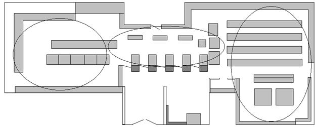 На основании выше перечисленного, говорить о перемещении товаров с одной полки на другую, из зоны в зону нет смысла. Для начала надо переоборудовать торговый зал таким образом, чтобы количество торгово-выставочного оборудования, товара на полках не способствовало включению безусловных оборонительных рефлексов и появлению большого количества «холодных» зон.