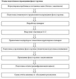 Работа фокус – группы ведется по составленному заранее сценарию, обязательно согласованному с заказчиком. Вся беседа должна быть записана на видео или аудио носители для дальней расшифровки и анализа.