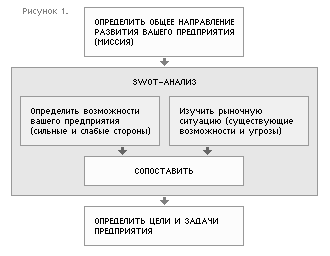 SWOT-анализ — это промежуточное звено между формулированием миссии предприятия и определением его целей и задач. Все происходит