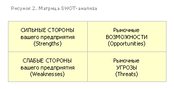 Для того чтобы получить ясную оценку сил предприятия и ситуации на рынке, существует SWOT-анализ.