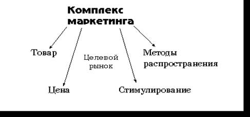 Комплекс маркетинга - это набор поддающихся контролю переменных факторов маркетинга, совокупность которых фирма использует в стремлении вызвать желаемую ответную реакцию со стороны целевого рынка. В комплекс маркетинга входит все, что фирма может предпринять для оказания воздействия на спрос своего товара. Многочисленные возможности можно разделить на 4 основных группы: