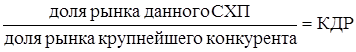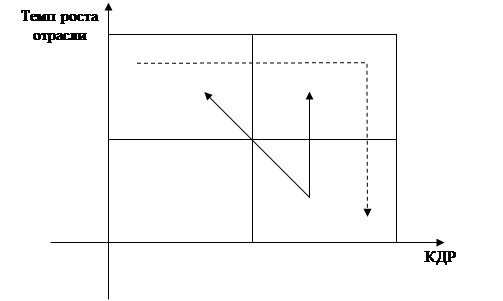 Матрица БКГ разработана американской консультативной фирмой. Бостонская консультативная группа предложила использовать ее для определения стратегии развития компании. Матрица двухмерная. По вертикали откладывают темпы роста отрасли, а по горизонтали откладывают коэффициент доли рынка (КДР). КДР рассчитывается по формуле: