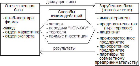| Международный менеджмент (бизнес) | - предполагает маркетинговую деятельность за границей, которая охватывает не только сбыт, но и все сферы деятельности предприятия (снабжение, НИОКР, финансы, кадры и пр.) - часто имеет место в рамках ТНК (транснациональных корпораций) |