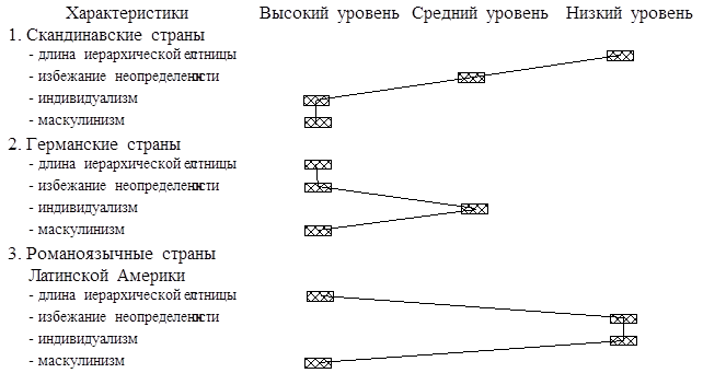 | 3. Коммуникации | Иерархические связи (большое количество команд и рекомендаций) | Малая связь между головной компанией и филиалами | вертикальные иерархические связи внутри региона | Вертикальные иерархические связи внутри компании |