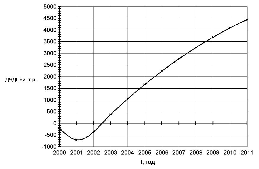 Вывод: В целом предполагаемый инвестиционный проект является рентабельным, максимальные затраты по проекту составляют 706,75 тыс.рублей в 2001 году. Проект начинает окупаться с 2003 года. Таким образом, период возврата капитала составит 3 года.