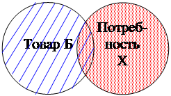 Товар – это все, что может удовлетворить потребность или нужду и предлагается рынку с целью привлечения внимания, приобретения, использования или потребления. Можно изобразить конкретный товар и конкретную человеческую потребность в виде кругов, а способность товара удовлетворить эту потребность представить в виде степени их совмещения. На таблице № 1 показано, что товар А не удовлетворяет потребность X, товар Б удовлетворяет ее частично, а товар В - полностью. В этом случае товар В будет называться «идеальным товаром». Товаром можно назвать все, что способно оказать услугу, т.е. удовлетворить нужду; Помимо изделий и услуг, это могут быть личности, места, организации, виды деятельности и идеи. Потребитель решает, какую именно развлекательную передачу посмотреть' по телевидению, куда отправиться на отдых, каким организациям оказать помощь, какие идеи поддержать. И если использование термина «товар» временами кажется неестественным, его можно заменить другими - «удовлетворитель потребности», «средство возмещения» или «предложение». Все эти слова имеют определенное ценностное значение для разных лиц.