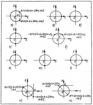 Здесь же М.И Башмаков рассматривает вопрос решения простейших тригонометрических уравнений по тригонометрической окружности.