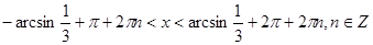 Мы решили неравенство для чисел, расположенных на одном периоде функции синус. Поэтому все решения неравенства могут быть записаны в виде