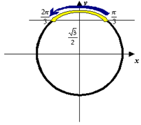 . Мы решили неравенство для чисел, расположенных на одном периоде функции косинус. Поэтому все решения неравенства могут быть записаны в виде