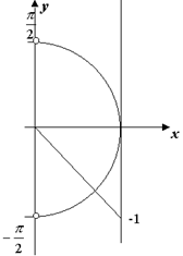 Точки пересечения проведенной прямой с окружностью это и есть решения данного уравнения, в данном случае это арктангенс -1, то есть