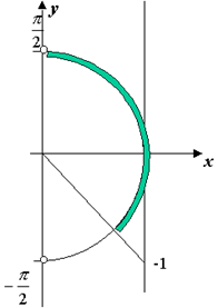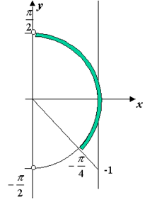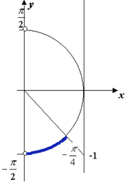 Второй конец дуги в случае решения неравенств с тангенсом всегда можно обозначить как арктангенс соответствующего числа. В данном случае это арктангенс -1, то есть