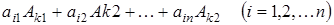 -го рядка матриці системи. Дійсно, підставляючи ці числа в ліві частини рівнянь системи (3), одержимо: