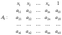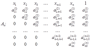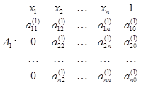 Скориставшись методом виключення Гауса і переставивши перші n стовпців, перетворимо таблицю до такого вигляду:
