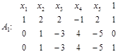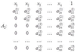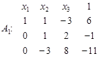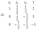 Виключивши невідомі х 1 за допомогою першого рядка, дістанемо таблицю: