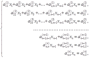 Метод Жордана-Гауса називають також методом послідовного виключення невідомих системи. Ідея методу Гауса полягає в наступному: за допомогою елементарних перетворень система приводиться до ступінчатої системи наступного вигляду