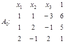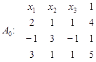 Перший рядок додамо до другого. Далі помножимо перший рядок на 3 і віднімемо від третього рядка. Утворимо таблицю:
