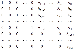 Якщо ранг матриці коефіцієнтів при невідомих дорівнює r , то таблиця коефіцієнтів набирає вигляду:
