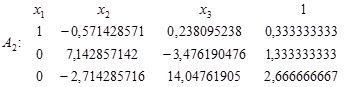Далі помножимо третій рядок на 1/7 і додамо до другого, утворивши заключну таблицю: