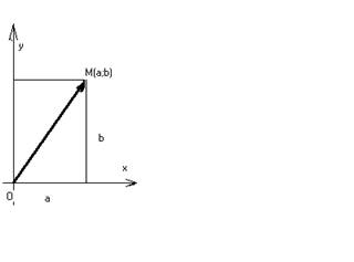Поставимо у відповідність кожному комплексному числу вектор з початком у точці О(0;0) і кінцем у точці М(a;b). Ви знаєте, що такий вектор називають радіус – вектором, а його проекції на осі є координатами вектора. Отже, можна сказати, що геометрични зображенням комплексного числа z = a + bί є радіус – вектор з координатами a і b. Відповідність між множиною комплексних чисел, з одного боку, і множиною точок або векторів площини, з іншого, дає змогу комплексні числа називати векторами аьо точками і говорити, наприклад, про вектор a + bί або про точку a + bί.