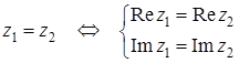 Одно комплексное равенство равносильно системе двух действительных равенств. Эти действительные равенства получаются из комплексного равенства разделением действительных и мнимых частей.