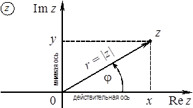 Геометрически модуль комплексного числа — это длина вектора, изображающего число z , или полярный радиус точки (x , y ).