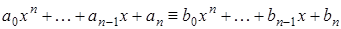 62. Сформулируйте свойство о тождественном равенстве многочленов .