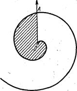 Самого Архимеда занимали, однако, другие, более трудные задачи, которые он сам поставил и решил: 1) найти площадь фигуры, ограниченной первым витком спирали (на рис. 4 она заштрихована); 2) получить способ построения касательной к спирали в какой-либо ее точке N.