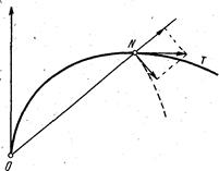Теперь, когда мы знаем обе составляющие скорости в точке N: одну по направлению ОN, равную υ (см/с), и другую, к ней перпендикулярную, равную πON/30 (см/с), остается сложить их по правилу параллелограмма. Диагональ представит скорость составного движения и вместе с тем определит направление касательной NТ к спирали в данной точке [20].