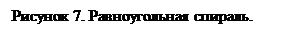Равноугольную спираль (рис.7) можно, определить как геометрическое место точек Р, движущихся и плоскости так, что касательная в точке Р образует постоянный угол а с радиус-вектором ОР, проведенным в точку Р из неподвижного полюса О. Дифференциальное исчисление позволяет легко и просто вывести уравнение логарифмической спирали. Наиболее естественно записывать его в полярных координатах (r, θ), в которых оно принимает изящный вид:
