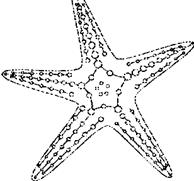 На листе представлена половина изображения морской звезды и половина ее чертежа.