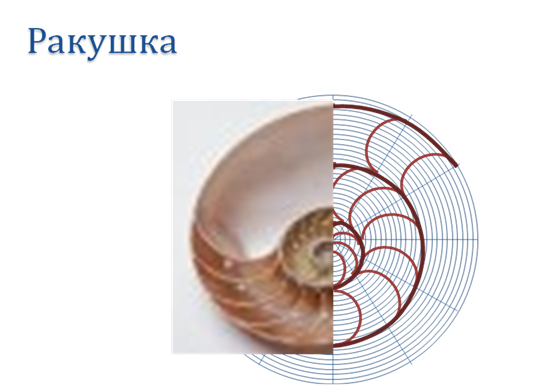 По имеющемуся изображению (рисунку, фотографии) учащиеся должны выделить виды геометрических построений, присутствующих у раковины моллюска.
