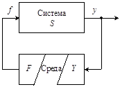 Рассмотрение причинно-следственного взаимодействия системы управления со средой связано с обособлением собственно системы S и выделением ее связей со средой через переменные входа f и выхода у (рис.1).