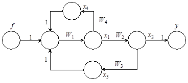 Простейший пример такой модели – нелинейный интегратор dy/dt = F (x ) структурно изображается как последовательное соединение безынерционного НЭ и линейного интегрирующего звена (рис.28). На рис.29, а изображен другой пример – модель системы с обратной связью в форме структурной схемы, а на рис.29, б та же модель представлена в форме сигнального графа, одна из дуг которой помечена двумя штрихами, указывающими на нелинейный характер преобразования сигнала.