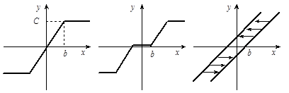 Приведенные кусочно-линейные СХ непрерывны, но имеют разрыв производной dy/dx. Существуют и кусочно-линейные СХ с разрывами первого рода.