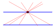 - При продолжении двух прямых от точки их пересечения расстояние между ними неограниченно возрастает.