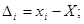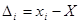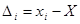 Для зручності обчислень можна взяти умовне значення близьке до отриманих результатів вимірів x0 . Обчислити різниці
